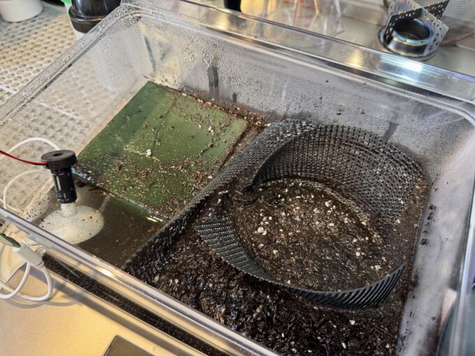 蓋の内側に水滴がついてるので、湿度は十分っぽい。
