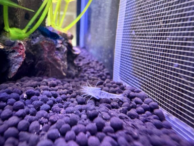 しかも、稚エビが10匹以上はいそう(小さすぎてちゃんと数えられない)なので、24cmキューブ水槽ではかわいそうだ。