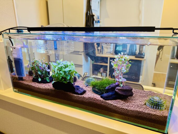 リビングにいると常に目に入る場所なので、美観的な意味で水草を少し増やしたりした。